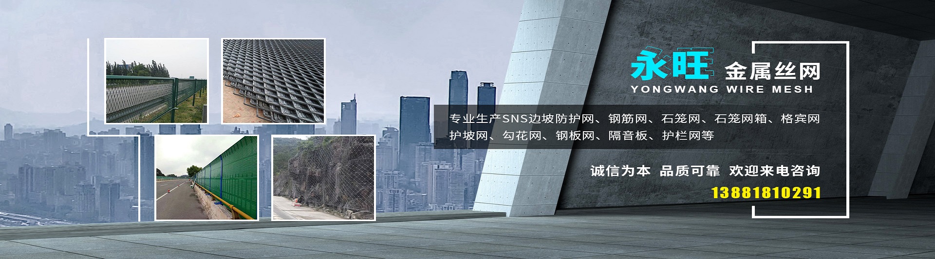 成都市永旺金屬絲網(wǎng)有限公司是一家研發(fā)、生產(chǎn)、加工、銷售為一體的責(zé)任制企業(yè)公司。本公司“以誠信為本、以服務(wù)社會已任、以科學(xué)創(chuàng)新為理念”。 專業(yè)生產(chǎn)SNS邊坡防護(hù)網(wǎng)、鋼筋網(wǎng)、石籠網(wǎng)、石籠網(wǎng)箱、格賓網(wǎng)、護(hù)坡網(wǎng)、勾花網(wǎng)、鋼板網(wǎng)、隔音板、護(hù)欄網(wǎng)等。產(chǎn)品主要運用于鐵路,高速公路,橋梁,隧道,機場,礦山,河道,球場,碼頭,港口等多個領(lǐng)域。 本公司期待與您長期合作,希望與您共創(chuàng)輝煌,我們愿與各業(yè)朋友精誠合作,共創(chuàng)美好未來,希望各業(yè)朋友來函來電